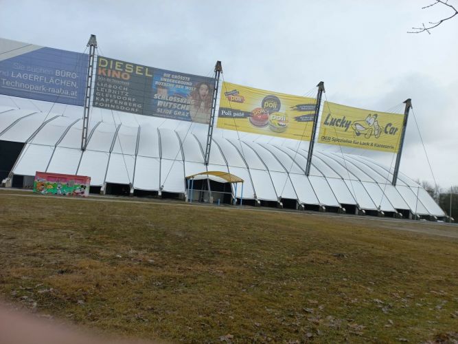 Die dreißig Jahre alte Davis-Cup Halle in Graz hat ein neues Membrandach bekommen, eine besondere Herausforderung bei solchen Maßen, Länge 120 m, Breite 80 m, Fläche 9.600 m², Nebenfläche 2.400 m², max. Höhe 21 m